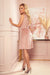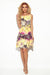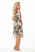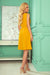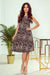 Loose trapeze dress with belt in large green leaves on a beige background. Brand numoco. Made in Poland.