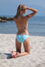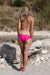 Opt for fresh, sorbet colors this summer! Fibi is a two-piece swimsuit with padded cups, on well supported underwire. The fabric is subtly shiny, Italian, high quality decorated with a mosaic pattern. Straps are tied at the neck, the girth is fastened with a buckle. Comes with plain bottoms with a belt. The costume does not include a push-up.